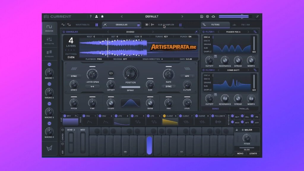 - Nueva colección de contenido de fábrica: más de 400 presets, más de 170 tablas de ondas y más de 800 samples.